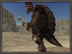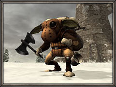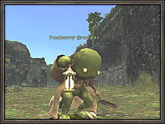 These tiny beastmen live solely in the Yhoator Jungle on the eastern half of Elshimo. The Tonberries possess a great deal of anger, or "rancor," in their hearts. It is this anger that binds them as a tribe while driving them to commit terrible acts against all other beings. During the Great War, the majority of the Tonberries remained in their stronghold, the Temple of Uggalepih. However, a few elite members of the tribe were sent to the Shadow Lord to act as his secret agents. These Tonberries would often sneak into the castles of the allied forces and assassinate important generals or political figures. Feared around Vana'diel, these beastmen were often referred to as the "invisible killers."