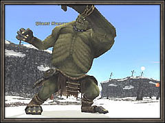 "Gigas" is the general term for enormous members of the Gigas, Giant, and Jotunn tribes. Groups of these giants can be found roaming the island of Qufim. As their appearances imply, the Gigas do not possess much in the way of intelligence. While they do possess a language, it consists of the stringing together of simple words or phrases. Their language is often unintelligible--even by members of their own kind. However, what they lack in intelligence is made up for in brute strength. Also, while not as advanced as that of the allied forces, their ship and castle building abilities are comparable to those of the Orcs or Yagudo.