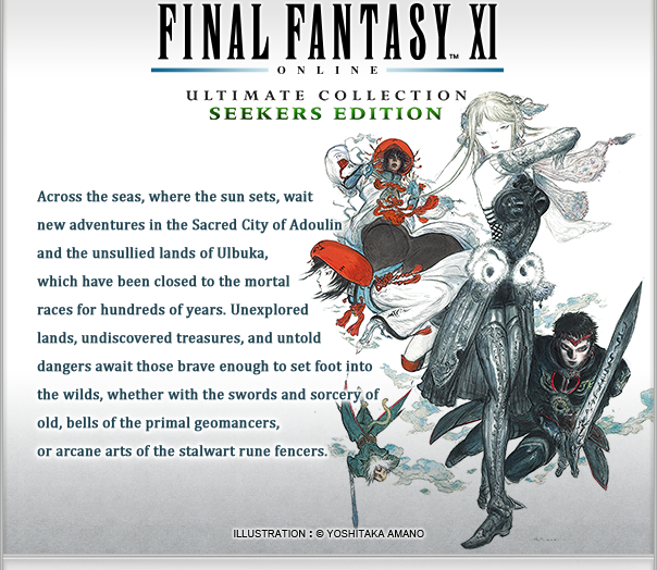 FINAL FANTASY® XI: Ultimate Collection Seekers Edition and FINAL FANTASY® XI: Seekers of Adoulin are available for purchase from the SQUARE ENIX STORE.