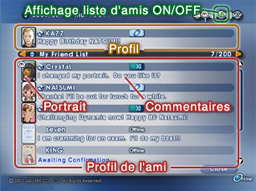 En plus de l'option « My Friend List »* (ma liste d'amis), la nouvelle option « Group Friend List » (groupe de liste d’amis) vous permet de communiquer avec vos amis de diverses façons grâce à de nouvelles options comme l'affichage des commentaires personnels de chaque membre sur chaque liste.