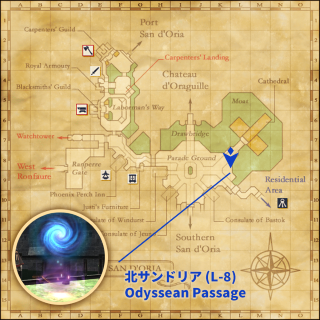 2. ロビーエリア「魂の聖櫃」に移動しようだいじなもの「星辰の指輪」を所持した状態で、以下のエリアに存在する"Odyssean Passage"を調べて、ロビーエリア「魂の聖櫃(