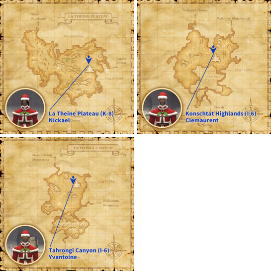 To show their appreciation to all adventurers for doing their part to make Vana'diel a better place, the moogles have prepared hordes of presents and scattered them across the locations listed below.