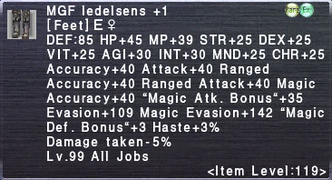 | Spoils from the giant monster in The Boyahda Tree (*) x1 | - Custom M Boots - Custom F Boots - Magna M Ledelsens - Magna F Ledelsens - Wonder Clomps - Savage Gaiters - Elder's Sandals (Use one of the above.) |