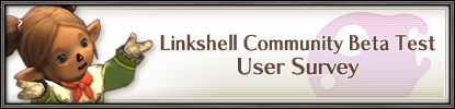 Une enquête auprès des utilisateurs de la version bêta de la Linkshell Community de FINAL FANTASY XI est lancée à partir d'aujourd'hui, et ce jusqu'au 21 septembre, 11h00 (GMT). Nous souhaitons améliorer le service en nous basant sur les résultats de cette enquête. Faites-nous part de vos opinions et de vos remarques concernant la Linkshell Community !
