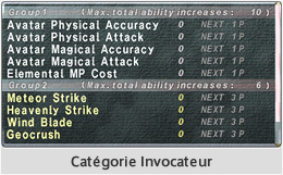 Ces catégories améliorées offriront 4 à 8 attributs par job. Selon la répartition de ses points de mérite, le joueur pourra avoir accès à plusieurs nouveaux attributs.