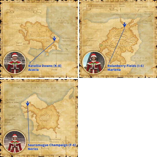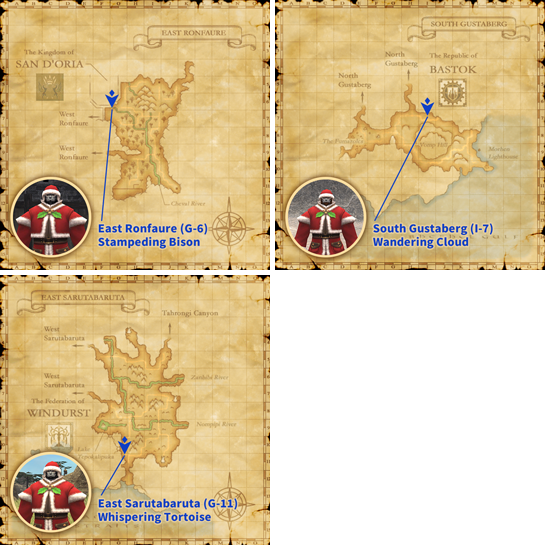 To show their appreciation to all adventurers for doing their part to make Vana'diel a better place, the moogles have prepared hordes of presents and scattered them across the locations listed below.