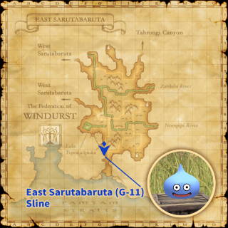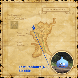 * Players' levels will be reduced to one while under the effects of the slime magic and they will be unable to attack or receive attacks from other monsters for the duration.Slabble in East Ronfaure (G-6) / Slime Tarou in South Gustaberg (J-7) / Sline in East Sarutabaruta (G-11)